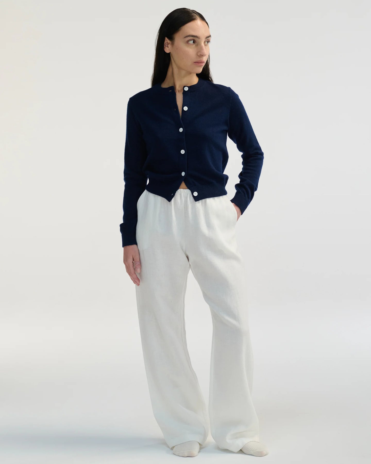 The Classic Crew Wool Cardigan by Almina Concept is a timeless layer designed to move with you through every part of your day. Its slim, cropped silhouette with a button-front closure and classic crew neckline makes it endlessly versatile, whether you’re throwing it over leggings after a workout or pairing it with track pants for a casual city stroll.