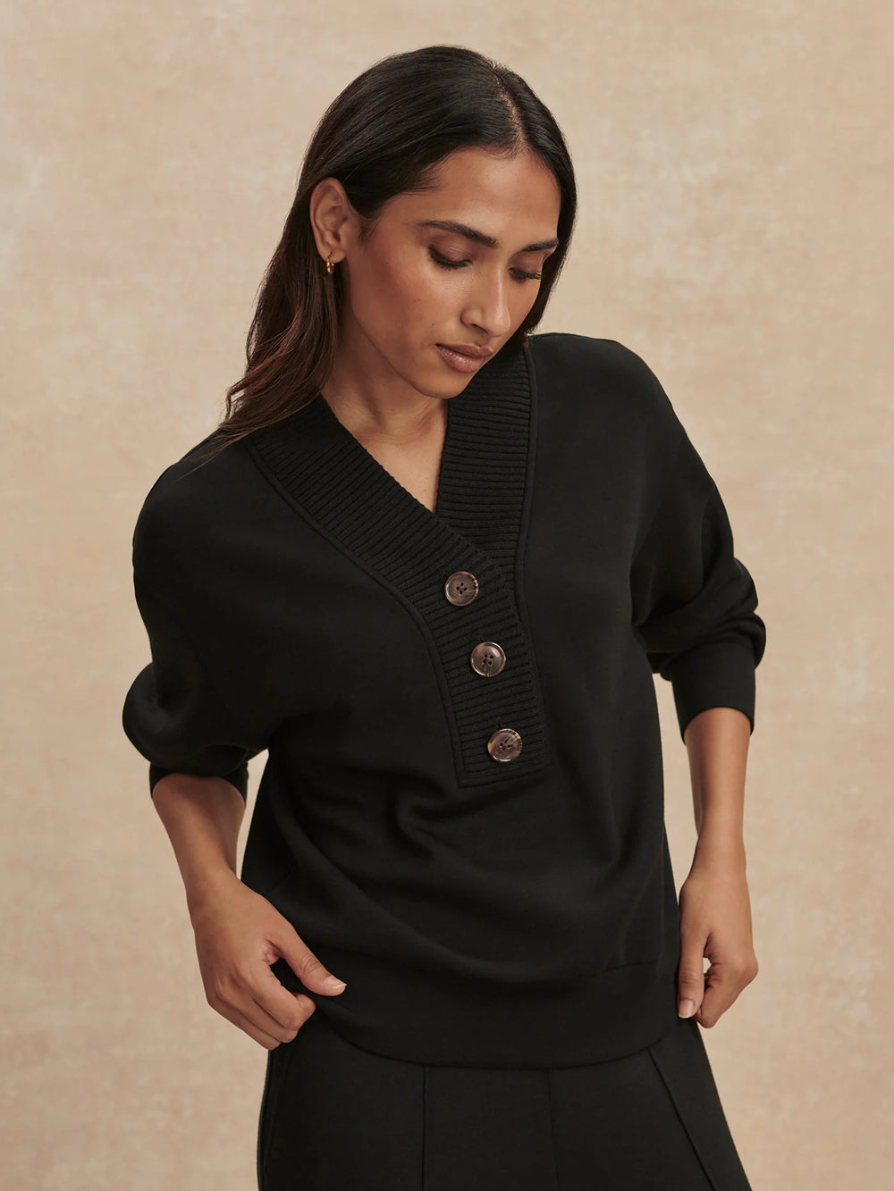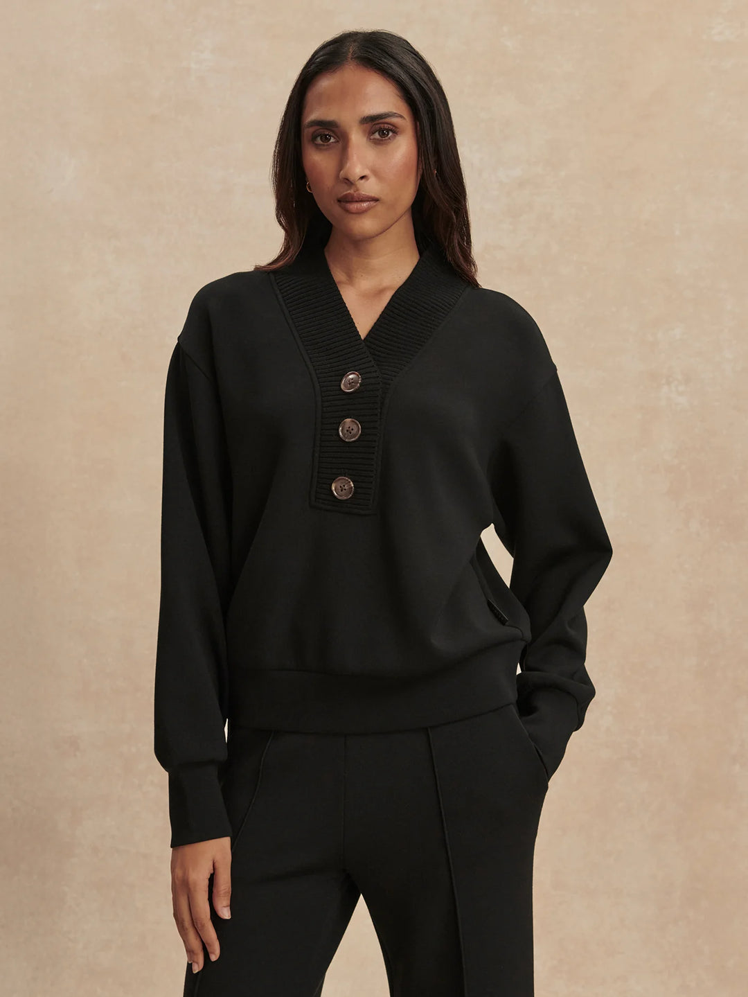 Lucine Button Front Sweat - Black