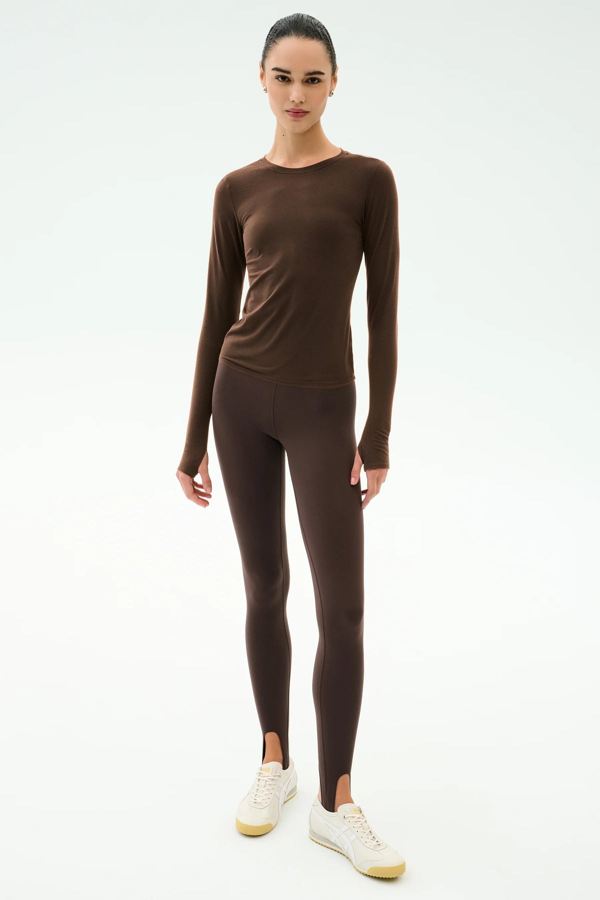 Crafted from Splits59’s signature Airweight Lite fabric, it delivers breathable comfort, soft stretch, and a smooth, second-skin finish. The classic crew neckline and elongated sleeves create a clean, polished look that transitions seamlessly from studio sessions to off-duty styling.