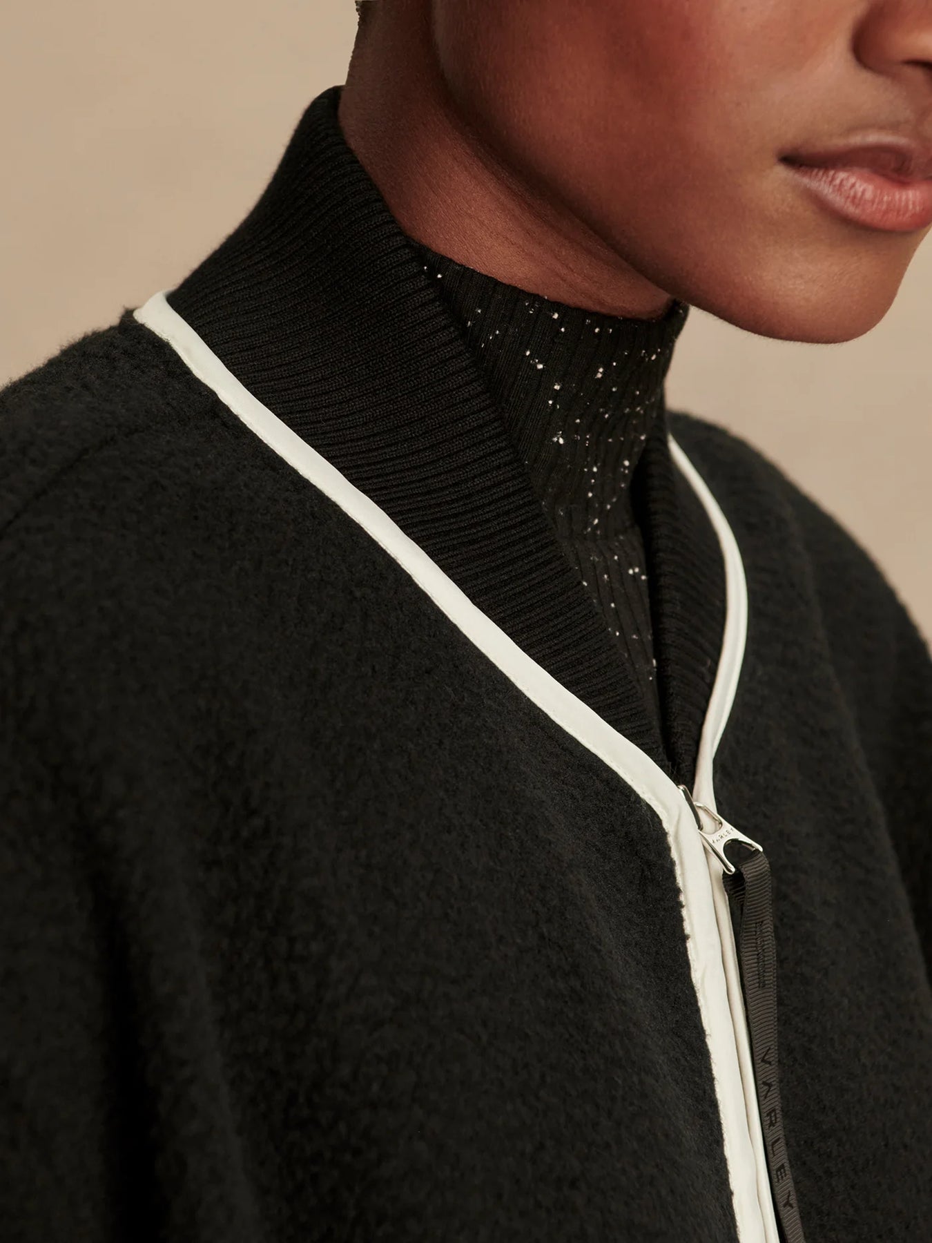 The Hansley Fleece Jacket by Varley is where laid-back ease meets elevated design. Cut from plush black fleece, this bomber-inspired silhouette delivers warmth and softness with a sleek finish that transitions seamlessly from studio to street.
